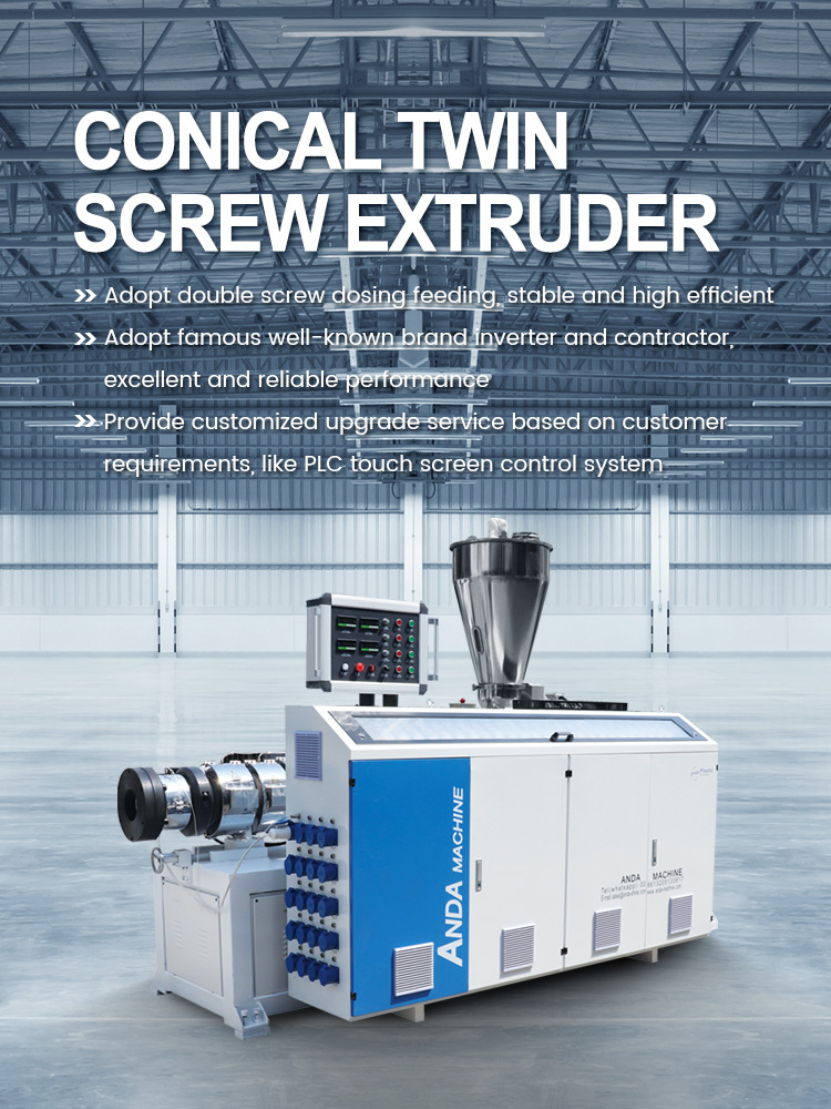 В основном он состоит из конического двухворнового экструдера, плесени, вакуумного калибровочного резервуара, выталкивания машины, режущей машины, укладчика, машины для беллы.