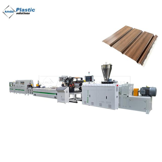 Машина для изготовления громких панелей WPC, включая четыре основных детали, они представляют собой двухдневный экструдер, вакуумный калибратор, перевозку двигателя и режущая машина. Anda Использование машин Всемирно известная полоса мотора, двигателя, коробки передач для производства и гарантирования качества машины.